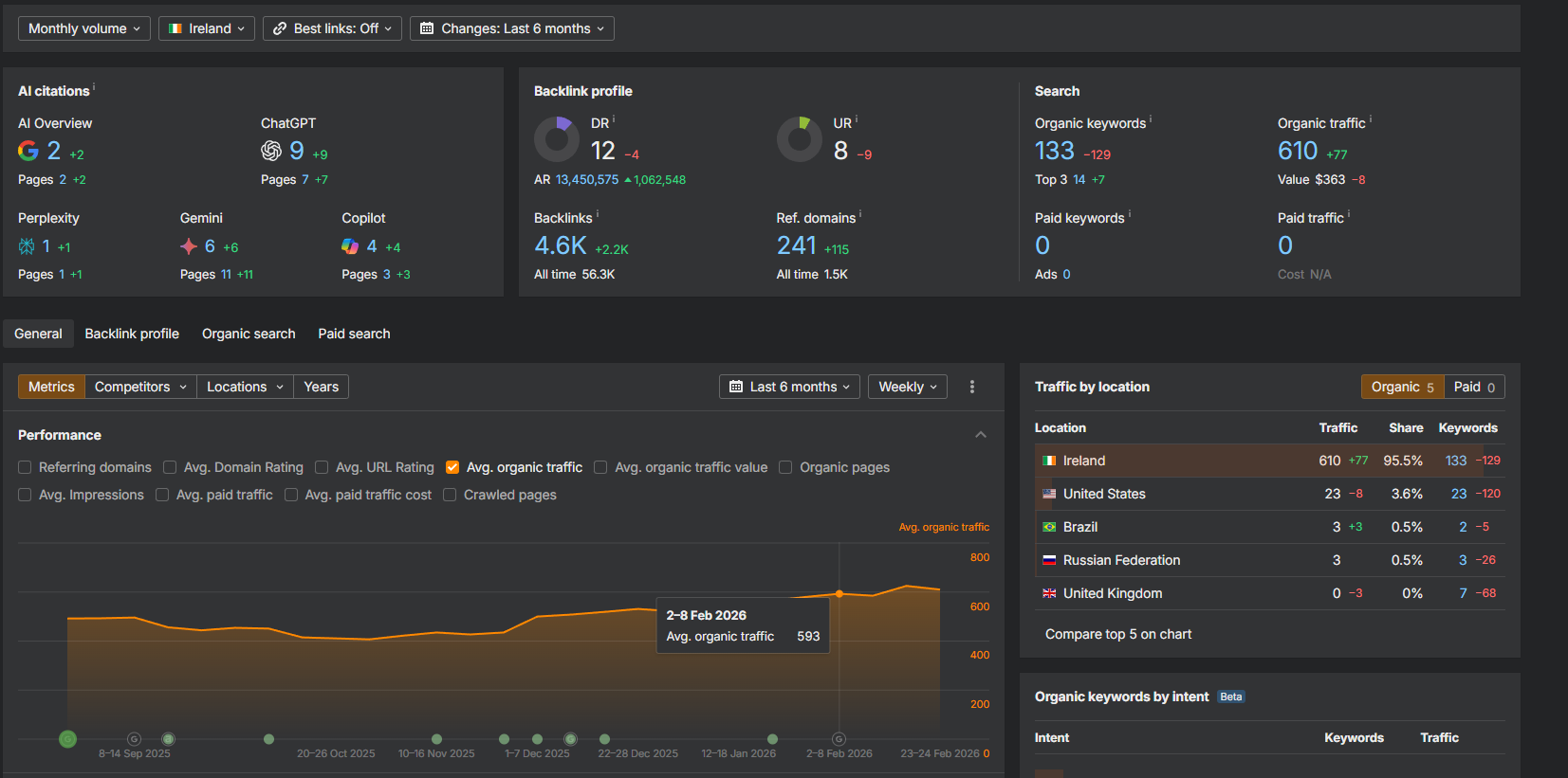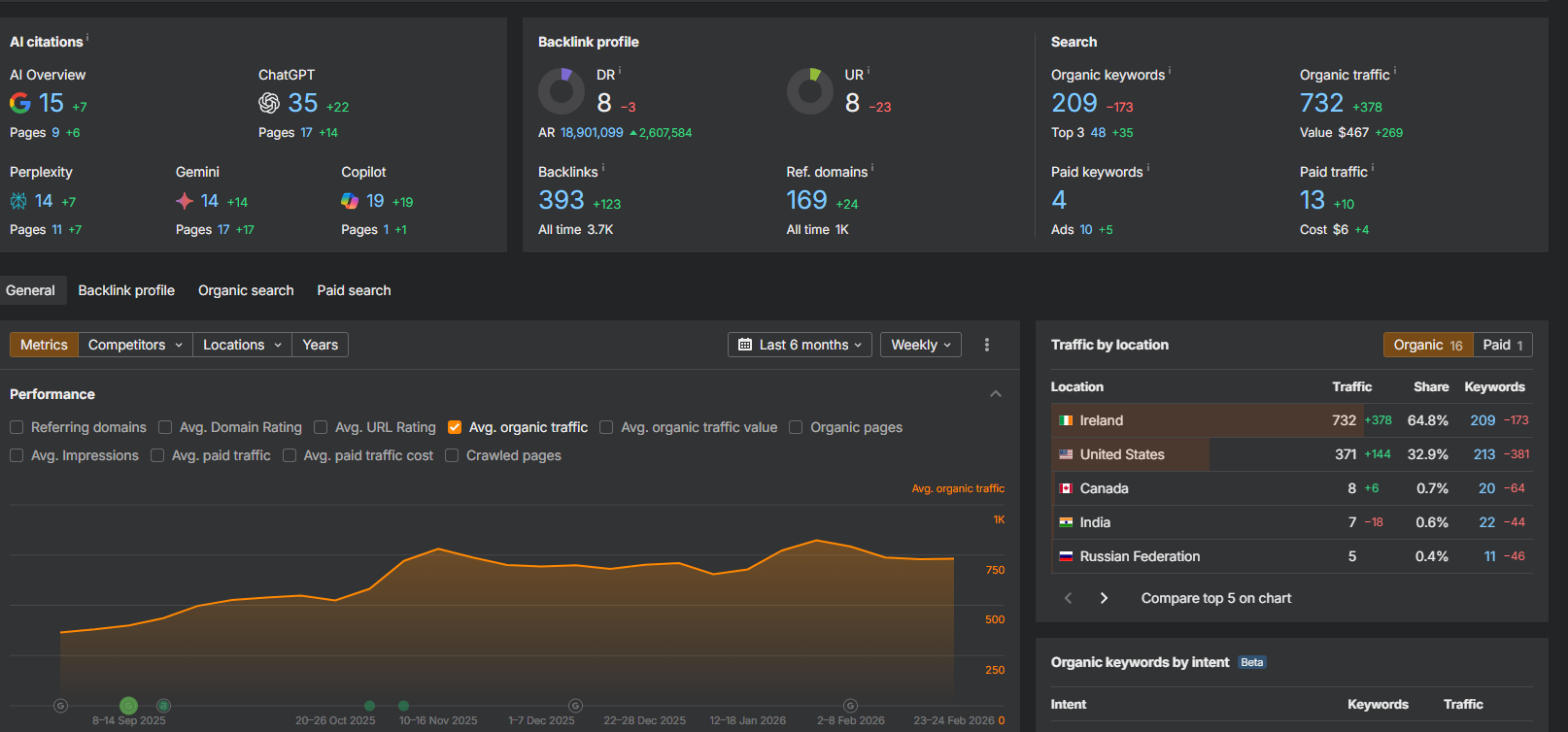 Comprehensive analysis of your current site health, competitors, and market gaps.